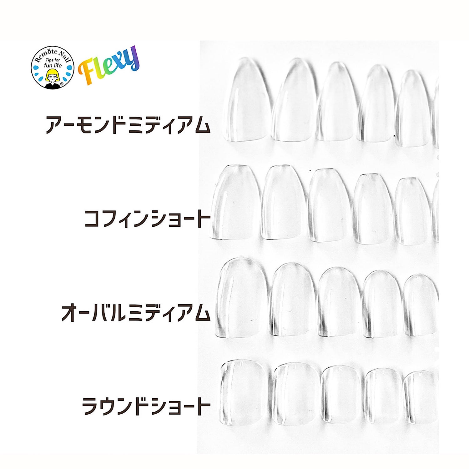 The part of the tip closest to the cuticle is thin and soft, and the tip itself is a shape-memory tip, and the tip is well-constructed, so even if you don't use a lot of gel, you can create a strong, well-finished looking nail tip.